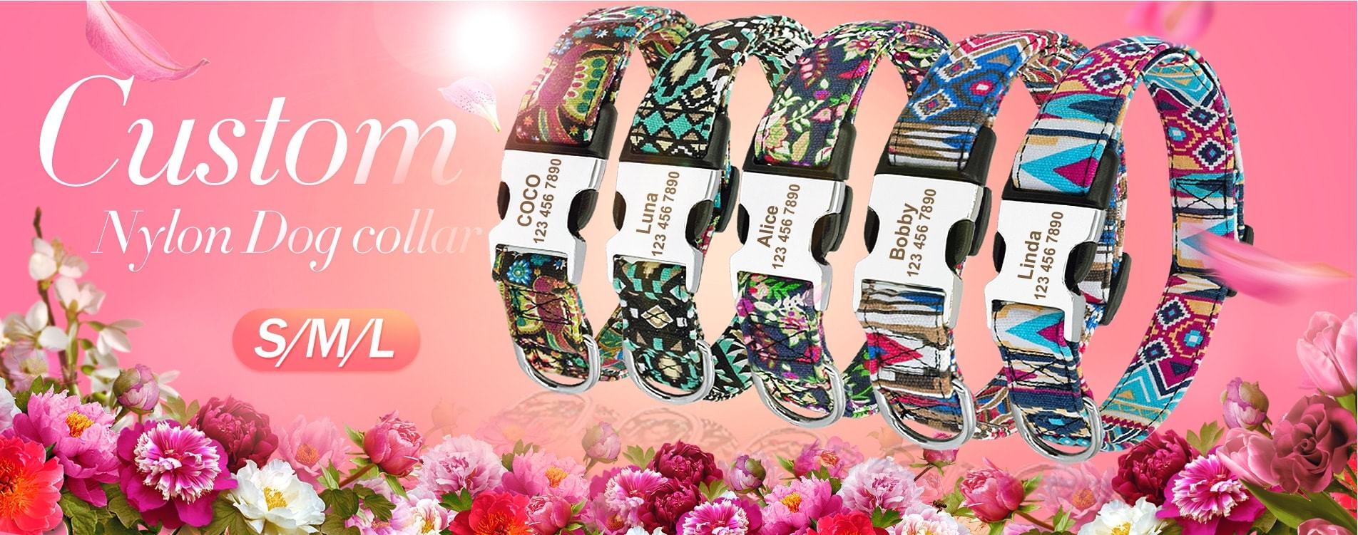 Customized Genuine Leather Dog Collar - Nameplate with Pet's Name and Phone Number